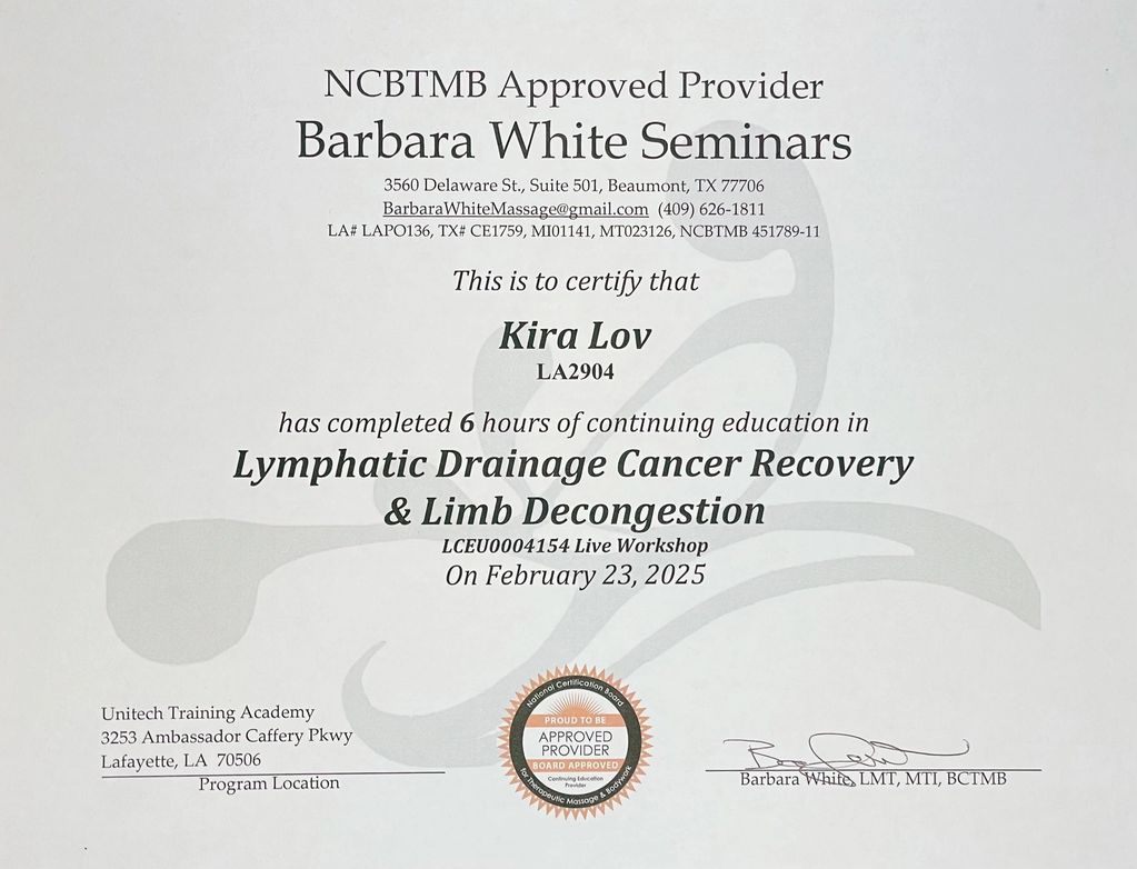 Lymphatic Drainage Cancer Recovery & Limb Decongestion Certification